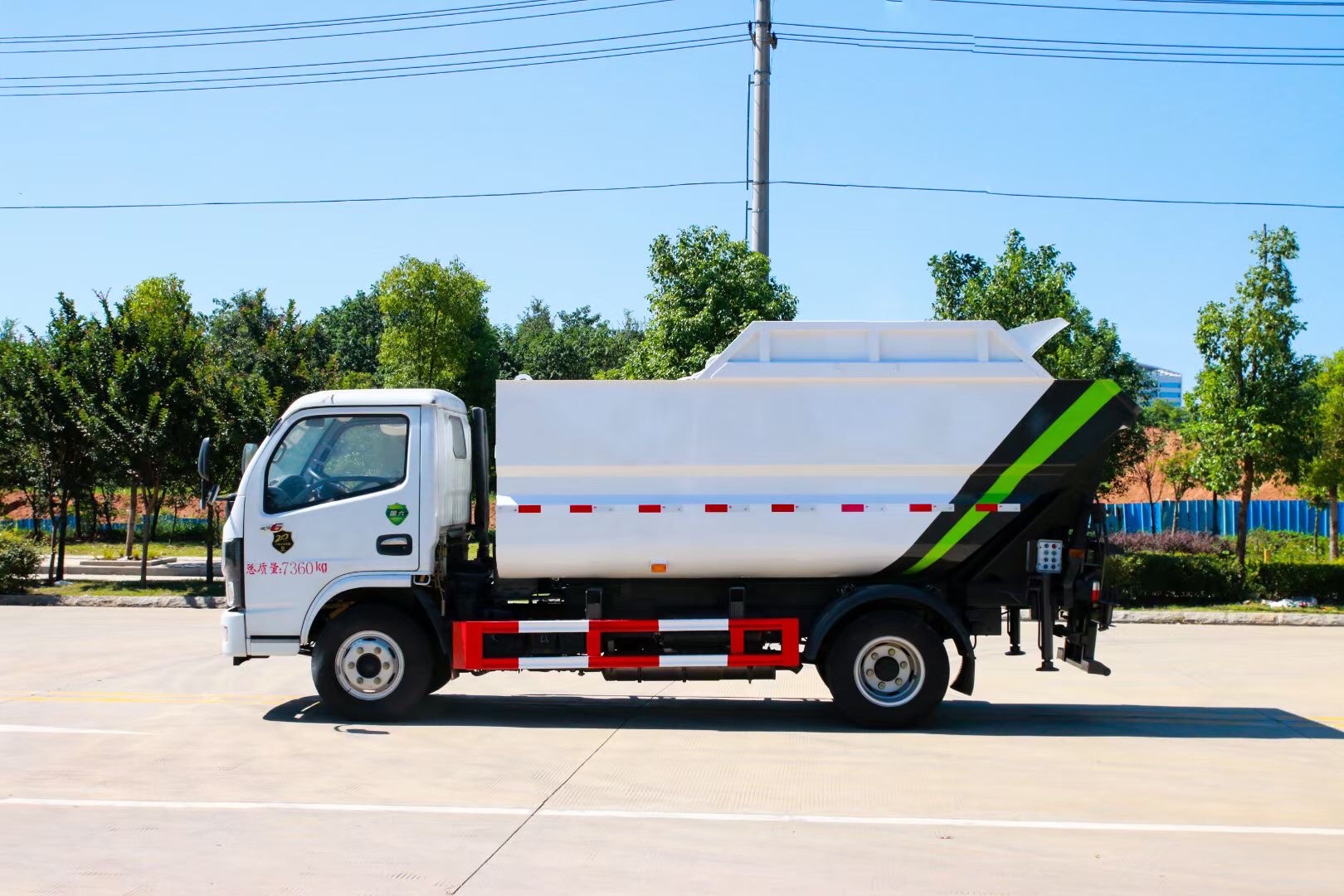 該車型是我公司根據(jù)環(huán)衛(wèi)市場需求開發(fā)的一種新型垃圾車,選用東風(fēng)公司生產(chǎn)的二類汽車底盤。由垃圾箱、翻桶機(jī)構(gòu)、舉升機(jī)構(gòu)、刮板及滑板壓縮機(jī)構(gòu)、液壓系統(tǒng)和電氣系統(tǒng)等部件組成。具有外形美觀、駕駛舒適、操縱方便、機(jī)動(dòng)靈活、可靠性高、運(yùn)營成本低、上料效率高等特點(diǎn)。適用于城市、鄉(xiāng)鎮(zhèn)的垃圾收集轉(zhuǎn)運(yùn),箱體采用船型斗結(jié)構(gòu),徹底解決了垃圾運(yùn)輸過程中的污水滴漏等問題。