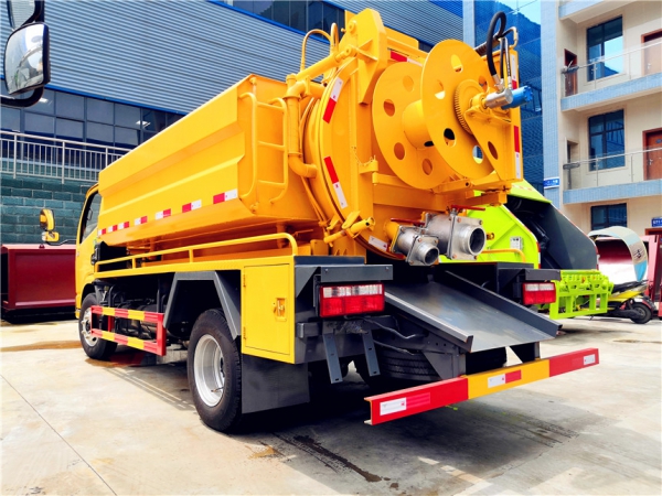 吸污部分:3.8方污罐,罐體5mmQ235優(yōu)質(zhì)碳鋼,配淄博SK-9水循環(huán)泵(北方地區(qū)可選裝真空油泵),8米吸污管一根,進(jìn)氣管加過(guò)濾網(wǎng),防溢閥加高,后蓋卡扣鎖緊,前視污亮管,后尾部加裝1個(gè)力拓牌**mm、150mm的球閥均帶進(jìn)出口,罐體帶舉升功能,后門(mén)帶液壓開(kāi)啟。